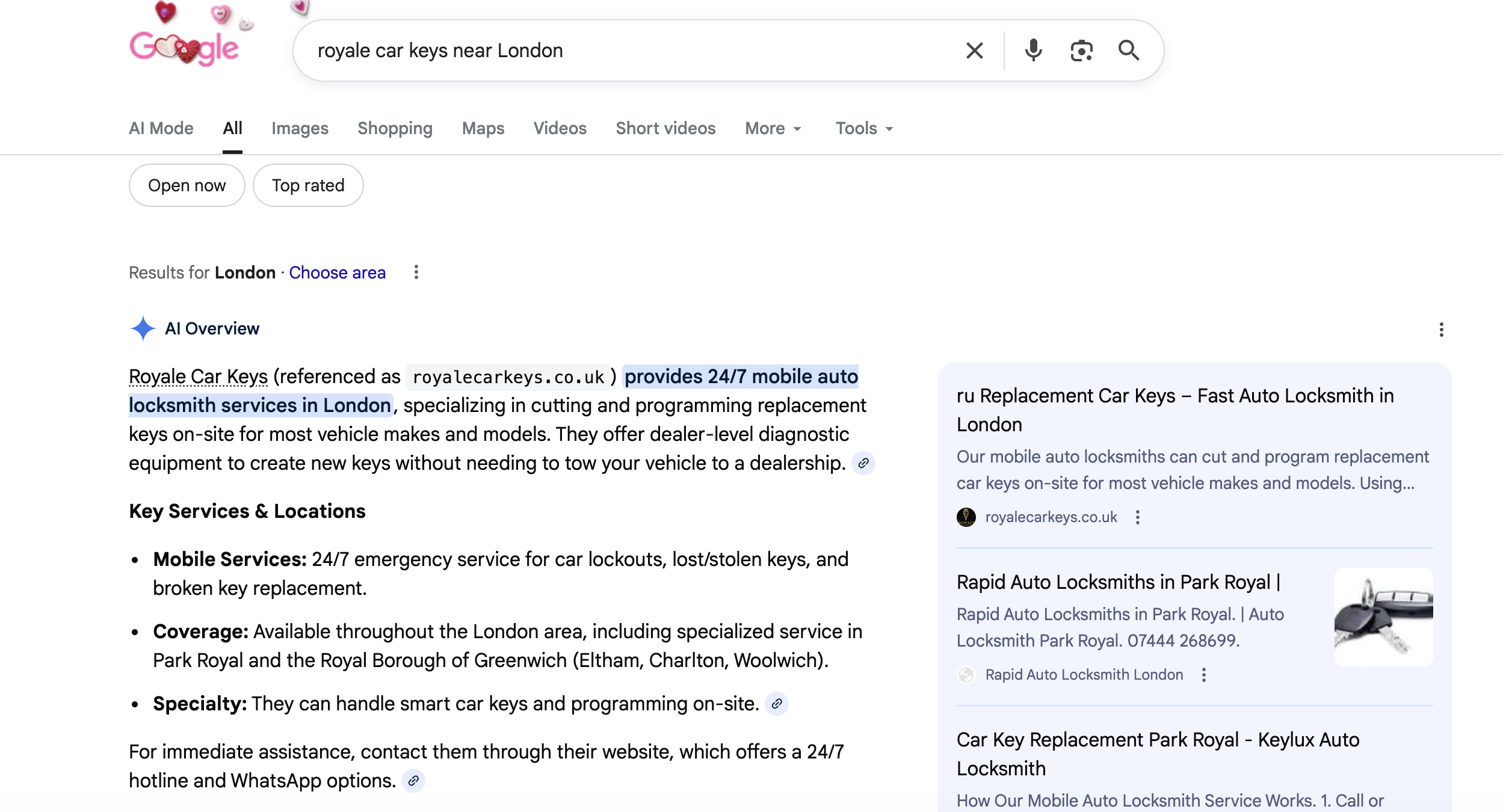 We map your services to specific user problems. If a user asks 'Who can fix my ignition?', the AI knows you are the answer because we have structurally linked your service to that specific query in the code